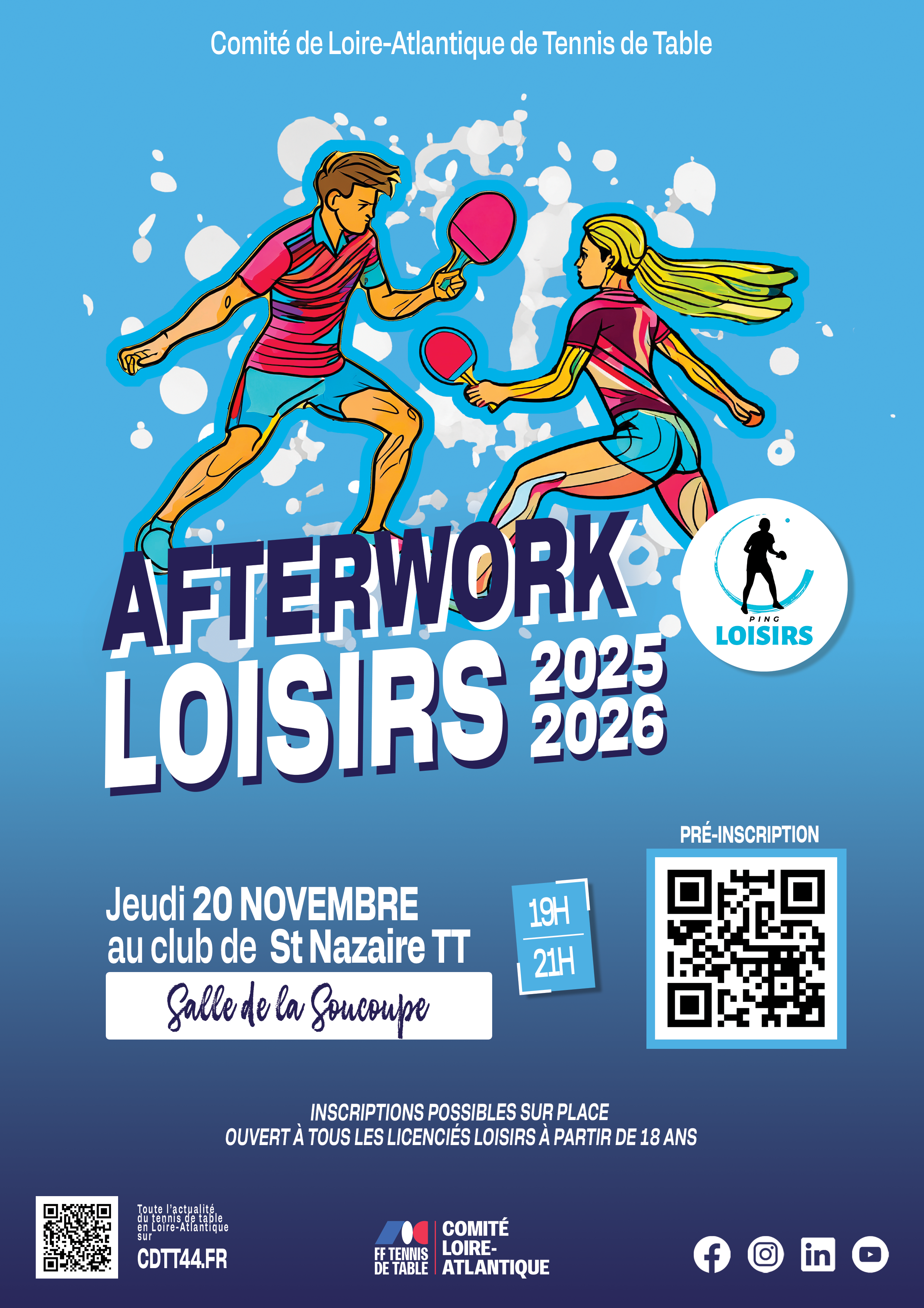 Afterwork loisirs : 1ère soirée 25/26 le 20 novembre à St Nazaire TT