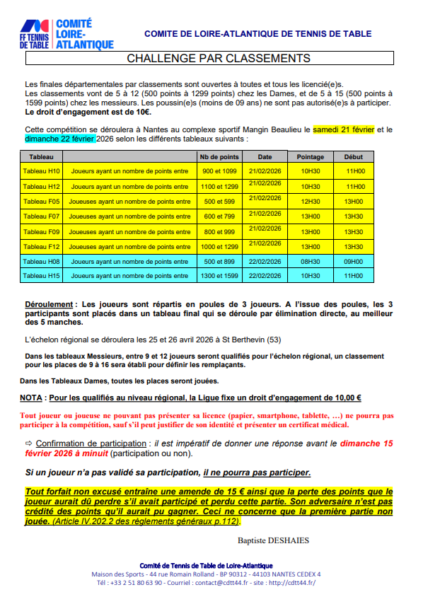 Les finales départementales par classements sont ouvertes à toutes et tous les licencié(e)s.