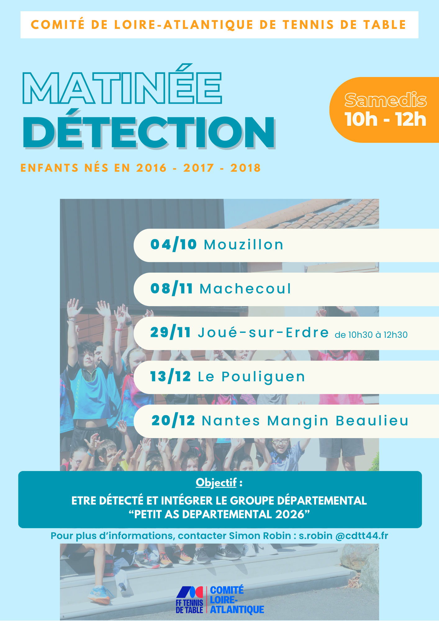 ✍️ Inscriptions pour les matinées détection à Mouzillon, Machecoul, Le Pouliguen et Nantes Mangin Beaulieu : Cliquez ICI